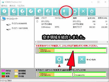 以前に買っていた『HD革命のEX2(パーティション操作)』で残りの500GBを結合して1TBにした。