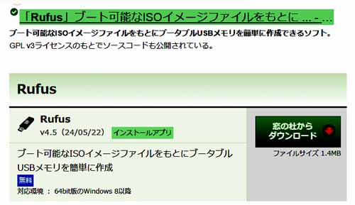 ②ufusを窓の杜からダウンロード