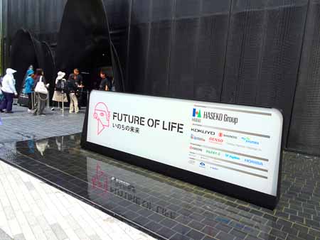 文明の森、化石化する前の「亜化石」と呼ばれる樹齢6500年の樹木を展示するインスタレーション(空間芸術)