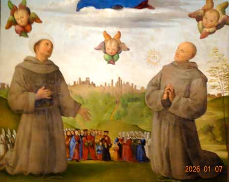 背景に描かれるのは、当時のウンブリア州ペルージャの街並みだ。